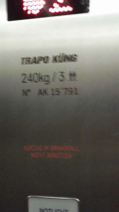 また、このエレベーターの重量制限は240㎏で、人数は3人です。一人80㎏換算で、日本の65㎏より重いですね。