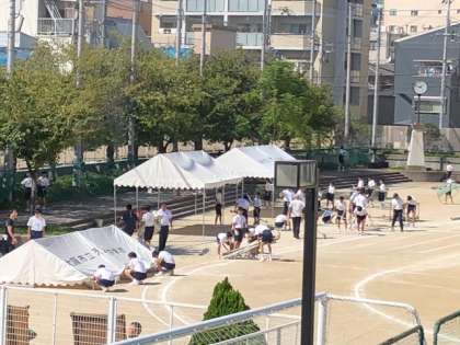 9月19日(水)午後、明日の体育大会に向けて、準備を行なっています。