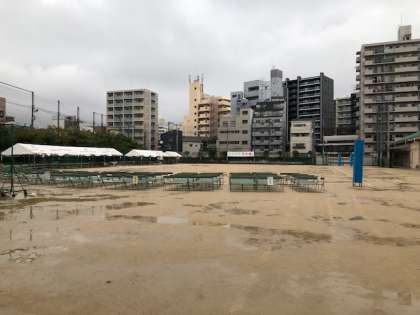 さて、今後の体育大会の実施ですが、とりあえず明日は9時開始を目指して準備を進めようと思います。実施か否かの判断は、本日と同様、明朝7時に行います。天王寺中学校ホームページ・緊急連絡メールに登録されている方にはメールでもお知らせしますが、天候とグラウンド状況を見極めながらの実施となりますので、やむなく開始時間やプログラムの変更・一部順延等を行うこともあるかと思います。ご了承くださいますよう、よろしくお願い致します。(順延の場合は正門・北門にも掲示いたします。)