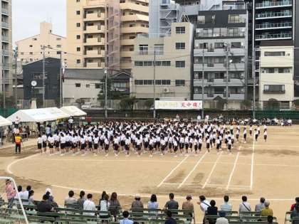 体育大会が始まりました。柔軟体操を行い、競技をスタートします