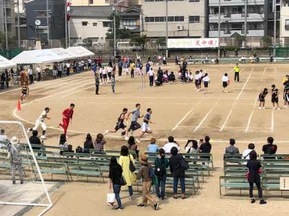 午後の部は予定通り、12:50に開始しました。本日午後の最初のプログラムはクラブ対抗リレー。この競技はクラブ対抗で真剣勝負の男女別リレーと、パフォーマンス部門のリレーが行われました。