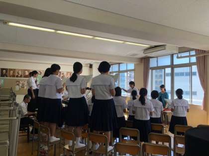 体育大会が終わり、音楽コンクールに向けての練習も始まっています。これは初めての音コンに臨む1年生の音楽の授業の様子です。どの学年も音コンに向けて、授業でも総合の時間でも練習に励んでいます。