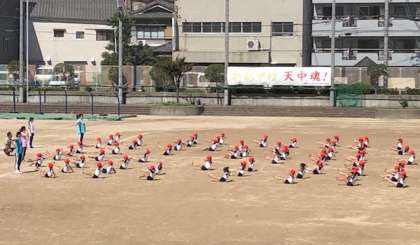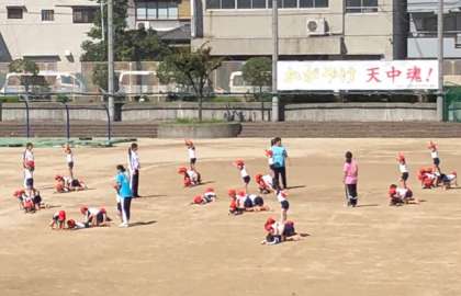 本日お昼から5限目にかけて、天王寺幼稚園の園児達が運動会練習に来られていました。小さい身体を一生懸命動かして、組み体操の練習をしていました。
