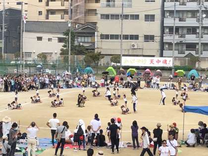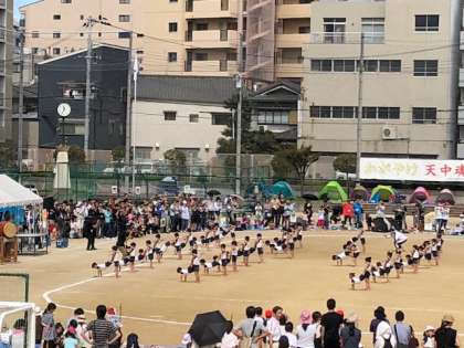 10月7日(日)昨日雨で延期になった天王寺幼稚園の運動会が、本校のグラウンドで行われました。今日は秋晴れで、園児達もかけっこに演技に一生懸命です!