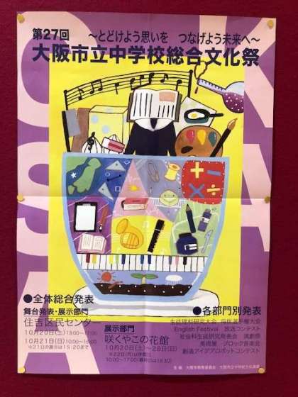天王寺中学校からも1年生から3年生の代表生徒の作品が展示されています。どの作品もたいへん素晴らしいです。また、大阪市立の中学校が様々な作品を出展していますので、見ごたえがあります。