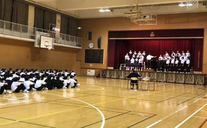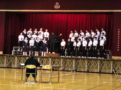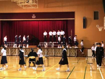本日6限目、体育館で1年生の音楽コンクール リハーサルが行われました。10月初めの1回目のリハーサルの時より、ずいぶんと声も出て、上手になってきました。全クラスが終了した後、音楽科の阿井先生よりアドバイスをいただきました。明後日の本番に向け、各クラス、精一杯練習をしてくださいね。