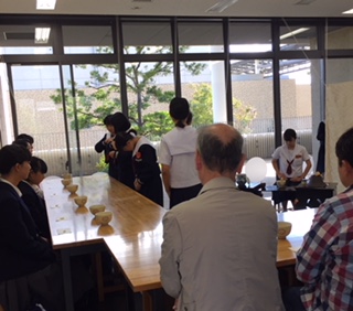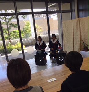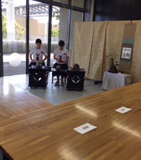10月20日、住吉区民センターで総合文化祭が行われ、茶道部はお点前を披露してきました。会場は普段の和室と誓い、ガラス張りのアトリエ工作室ということでした。いつもと違う雰囲気の中、たくさんのお客様が来られて緊張もしましたが、練習の成果をしっかりと出すことができました。また、他の学校のお点前も見学できたので、良い刺激になりました。