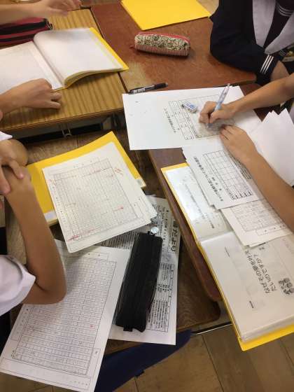 今までに個人で書いたレポートを整理しながら、班ごとに割り付けや下書きに取り組んでいます。