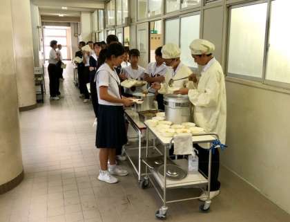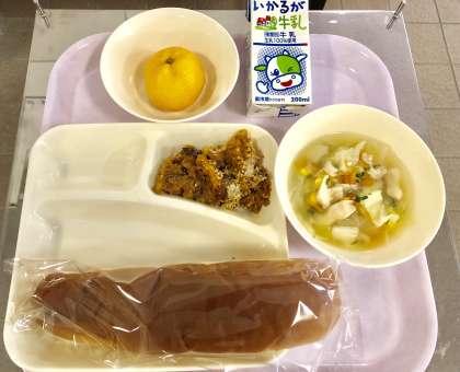 写真は1年生の配膳の様子です。みんなモリモリ残さず食べています!今日もおいしくいただきました。ごちそうさまでした!