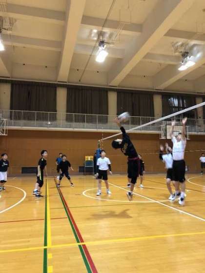 本校体育館にて清風中学校と合同練習を行っています。来週に行われる男子バレーボール新人大会に向けて一生懸命頑張りましょう!