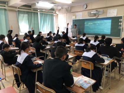 1年生の数学の授業の様子です。比例を学習していました。手もたくさん上がっていました。