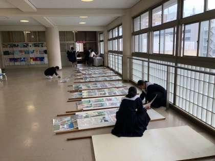 展示準備の様子です。明日の文化発表会に向けて、着々と準備が整えられています。