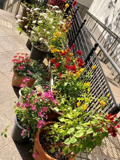 正門から玄関にかけて、管理作業員さんが育ててくださった小菊・ケイトウ・マリーゴールドが綺麗に咲いています。