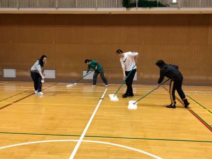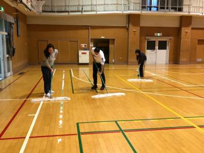本日の放課後、体育館を使うクラブの先生方が、体育館の床のワックスがけをしてくれました。