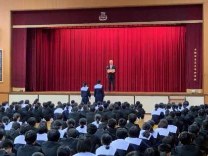 12月3日(月)全校集会において、昨日大阪信愛女学院で行われたビクトリーカップで準優勝をおさめた女子バレーボール部が表彰されました。よく頑張りました!