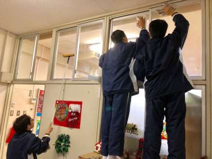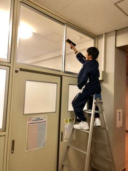 放課後に1年生のボランティアによって、2階の保健室、特別支援学級の上部の窓を掃除してくれました。窓はピカピカにきれいになりました!