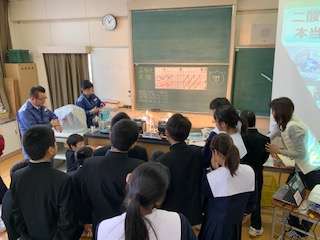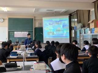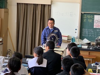 1年生の理科の授業に関西電力から出前授業に来ていただきました。温暖化問題の実験をして、二酸化炭素の温室効果について実感できました。電流も体感して有意義な学習ができました。