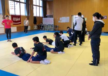 腕立て、背筋、スクワット、腹筋などの正しいトレーニング方法を実践しながら楽しく学ぶことができました。各クラブのトレーニングの際にぜひ生かしていきましょう。