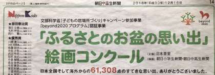 今年度の文部科学省「こどもの居場所づくり」キャンペーン参加事業『ふるさとのお盆の思い出』絵画コンクールにおいて、本校の3年生の女子生徒が選考委員長の名前を冠した「原田泰治賞」を受賞しました。3月に東京で表彰式があるそうです。おめでとうございます!とっても素敵な作品ですね!