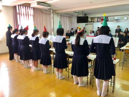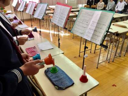終業式・学活終了後、音楽室にて合唱部によるハンドベル・クリスマスコンサートが行われました。