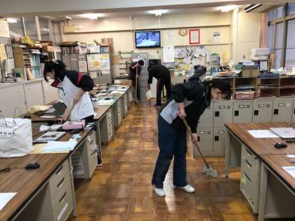 12月26日(水)夕方から、職員室の床を拭き、ワックスがけをしました。