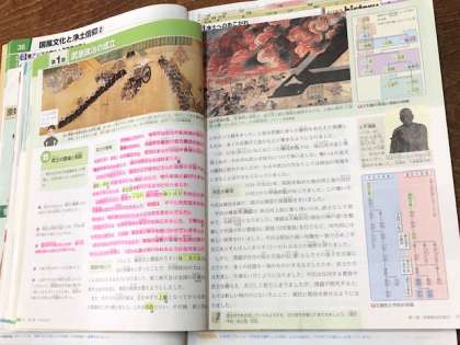 1年生の国語の授業では「文法」の学習を、社会の授業では「武士の登場と院政」についての学習を行っていました。