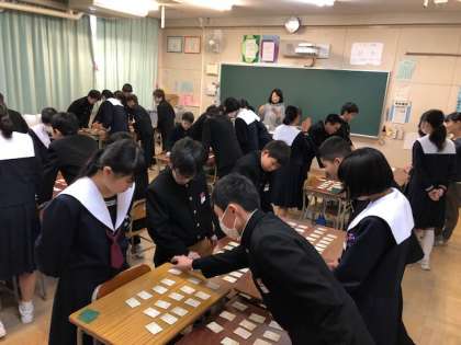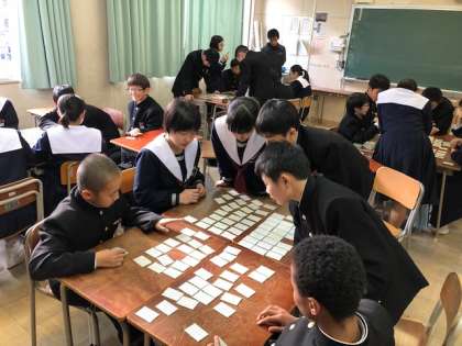 1月9日(水)6限の総合の時間に、1年生では百人一首大会に向けての練習が各クラスで行われていました。