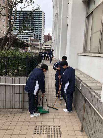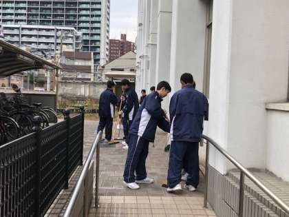 本日放課後、1年生のボランティア清掃隊が校舎の南側、自転車置き場やスロープの辺りを掃除してくれました。とてもきれいになりました。ありがとう!