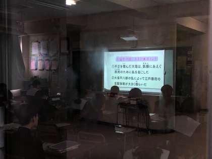 1月15日(火)2年生の社会科の授業では、歴史(大塩平八郎の乱)についてビデオ教材を使って学習していました。