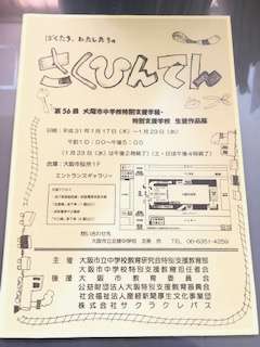 本日1月22日の5.6時間目、支援学級の1年生の生徒2名と大阪市役所で開催されている「ぼくたちわたしたちのさくひんてん」の見学に行ってきました。