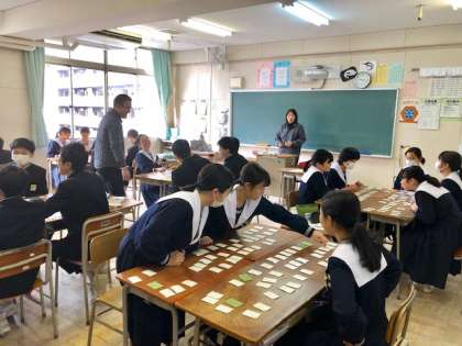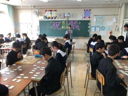 1月28日(月)1限、2年生も今週の百人一首大会に向けて、班ごとに練習に励んでいますが、どのクラスも真剣勝負でした!