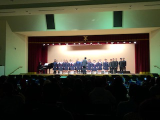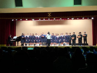 曲目は『風になりたい』『いのちの歌』『また逢う日まで』の三曲です。三校の合唱部の歌声で会場が温かな雰囲気に包まれています。