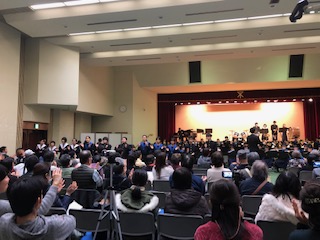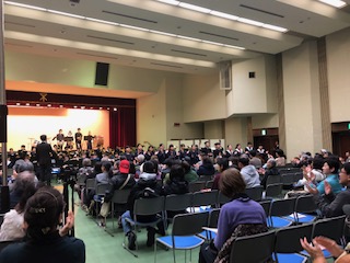プログラム最後は、みんなで歌おう!ということで、吹奏楽の演奏に合わせて合唱部が『故郷』を歌います。会場のお客さんにも歌って頂き、会場が一つになりました。素敵ですね。