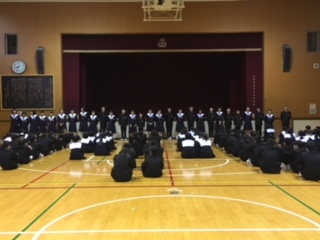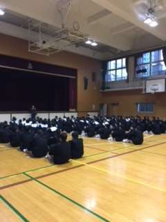 本日の学年集会で1月31日に行われた百人一首大会の結果が発表されました。クラス別では、優勝が4組、準優勝が3組となりました。個人成績も発表され、1位から30位までの生徒には学年から賞状が授与されました。