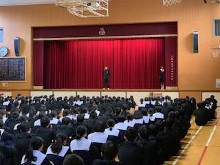朝の全校集会で、各委員会の委員長から専門委員会報告がありました。今月は、学年末に向けて体調を整えながら、初心に立ち返って、確実な行動を心がけようと言うものが多かったです。