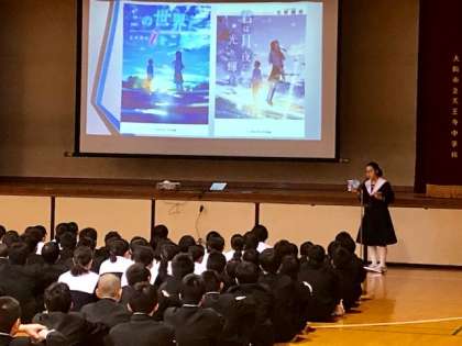 1年生全員が見守る中、とても緊張したでしょうが、英語でしっかりと発表していて、素晴らしかったです!