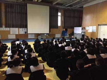 2月15日(金)本日、2年生は「障がい理解教育」として、シドニーパラリンピック代表の宮本圭さんを講師に招き講話をして頂きました。映像やエピソードを交えながら、とても楽しい講話となりました。生徒達の質問にもたくさん答えてくださいました。ありがとうございました。