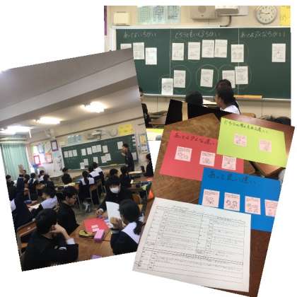先週、班で意見交換した「あっていいちがい」「あってはいけないちがい」「どちらともいえないカード」について、今日は学級で意見交流をしました。どのクラスも、活発な意見交流がされていました。