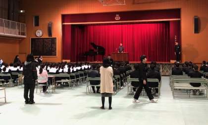 3月12日(火)3年生は公立高校の入試も終え、卒業式の練習を行っています。いよいよ明日は予行、明後日14日(木)は卒業式の本番です。天王寺中学校の仲間と過ごす時間を大切にしながら、思い出深い卒業式にしましょう。