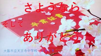 旅立ちの時にみなさんが歌った『友〜旅立ちの時〜』のように、「進むべき道の先に どんなことが待っていても」みんなで歌った歌や天王寺中学校で共に頑張ったことを思い出して、輝く未来に向かって進んでくださいね。応援しています!