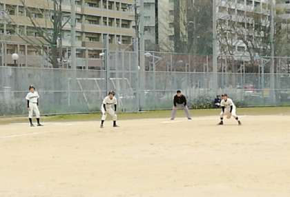 3月25日(月)野球部の公式戦(春季大会3回戦)が浪速公園野球場で行われました。対戦相手は新東淀中学校。健闘及ばず3対1で敗戦でしたが、選手みんなは一生懸命頑張りました!お疲れさまでした。