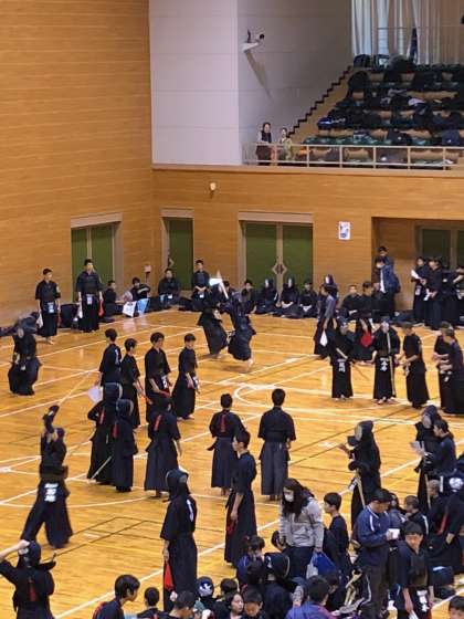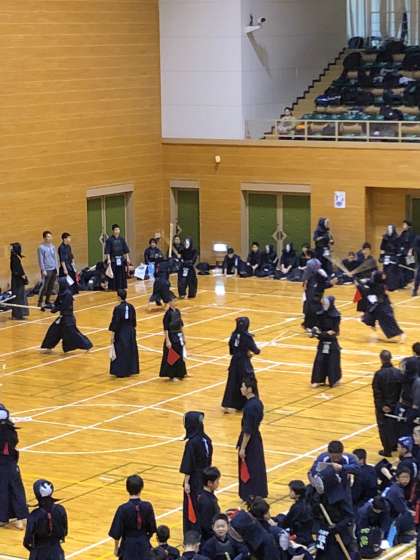 本日剣道部は、はびきのコロセアムで行われている錬成大会に参加しています。大阪府内の学校だけではなく、兵庫・奈良・京都・和歌山の中学校も来ており、64校集まっています。午前中は予選リーグ、午後に決勝トーナメントが行われる予定です。