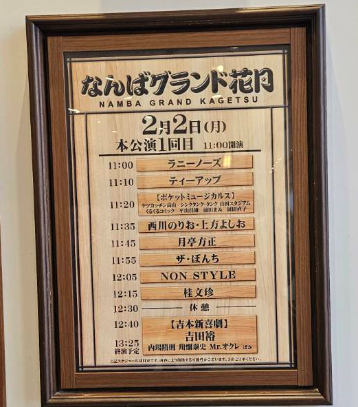 なんばグランド花月では、有名どころがそろって出演する漫才や落語、新喜劇を鑑賞し、2時間少しの間、笑いっぱなしでとても盛り上がりました。