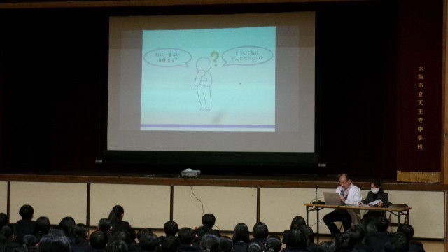 講師として、大阪けいさつ病院からお医者さんと看護師の方をお招きして、がんについて様々な角度からお話をしていただきました。