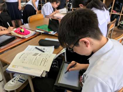 本時は刺激を受け取ってから反応するまでの反応速度の平均値を測定し、タブレットを使い、エクセル表にまとめました。