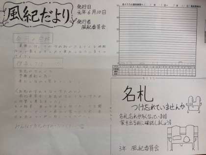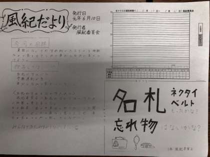 本日、風紀だよりが発行されました。