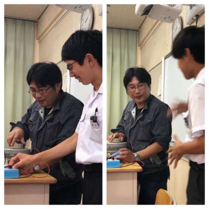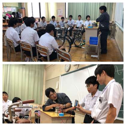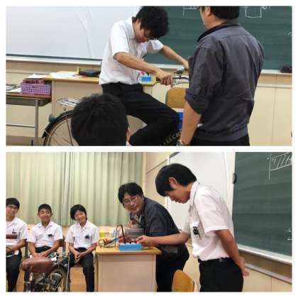 自転車や電車の模型を使い、電気について学びました。
