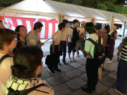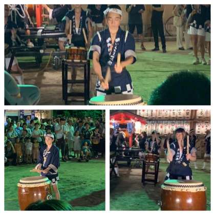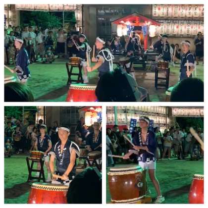 本宮にてお練りが行われ、枕太鼓では夕中生が力強いパフォーマンスを披露してくれました。