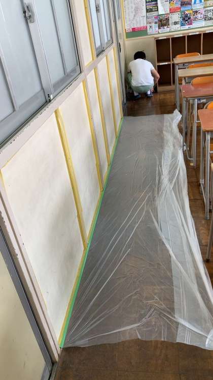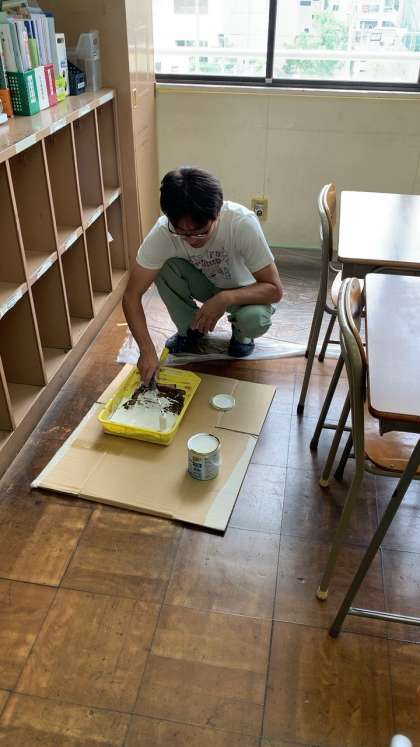 管理作業員さんが、教室のペンキ塗りをしてくれました。