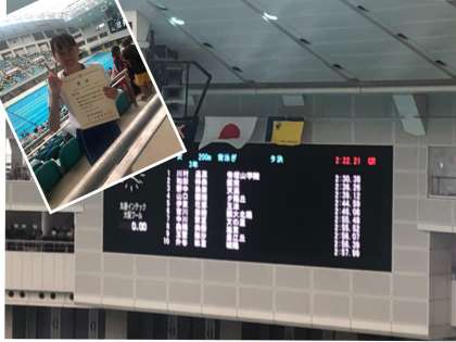 200背泳ぎ(女子3年)に出場し、レース後半、粘り強く泳ぎ4位入賞することができました。